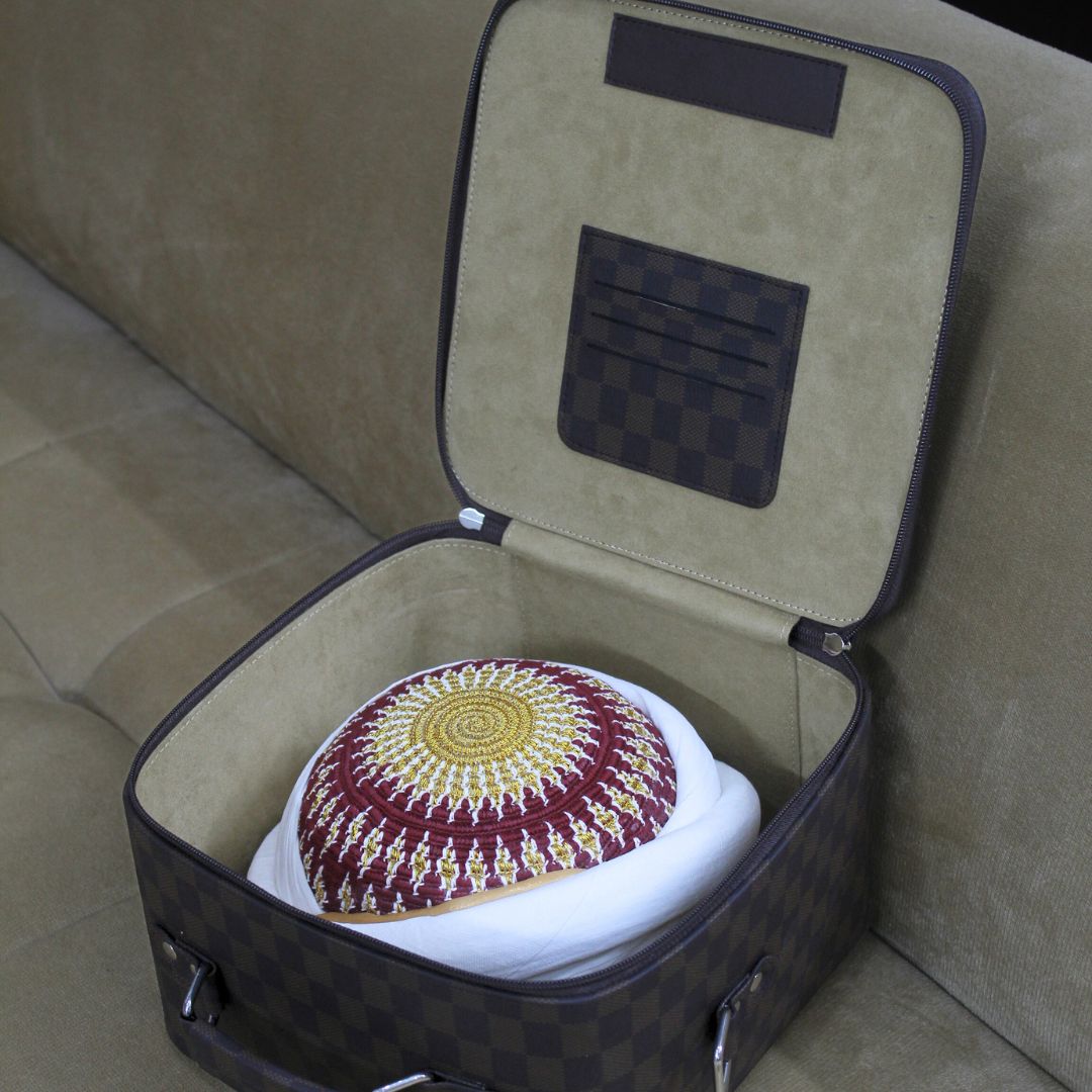 Whether you’re traveling or looking for a stylish storage solution at home, our exclusive Paagri box is the perfect accessory to preserve the dignity and beauty of your Dawoodi Bohra Paagri.